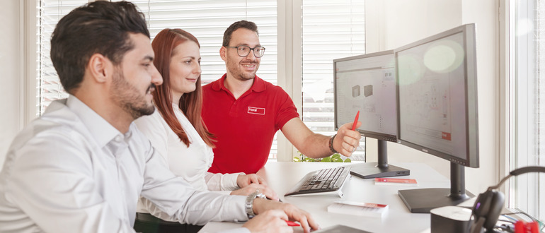 Le système intelligent de régulation Hoval TopTronic E, intégré à la solution hybride, permet une synchronisation complète entre les deux systèmes de manière entièrement automatique. Une seule configuration initiale est nécessaire, effectuée par un technicien qualifié Hoval, pour définir les valeurs souhaitées et automatiser la commutation entre la PAC et la chaudière, en fonction des différents modes et des températures extérieures.