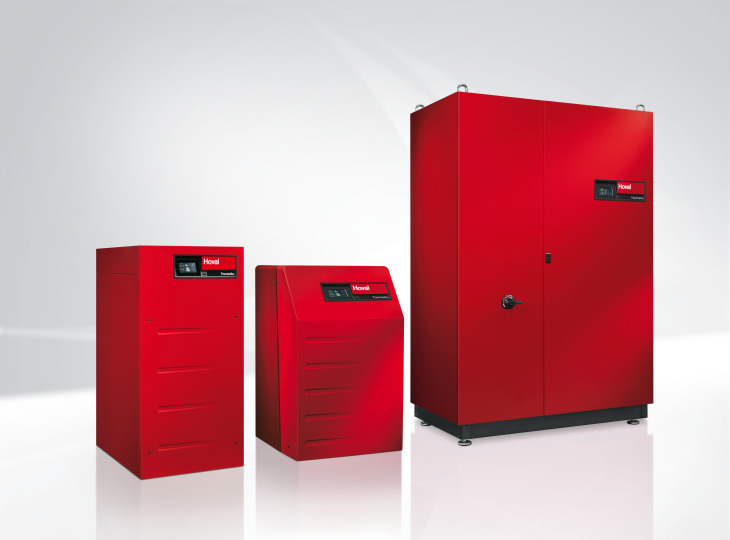 - Les pompes à chaleur eau glycolée/eau et eau/eau Hoval Thermalia twin (20-42) et twin H (13-22): pour une installation à l’intérieur, faible encombrement : seulement 1 m², isolation acoustique par montage avec triple amortissement, avec échangeur de chaleur à plaques en acier inoxydable.