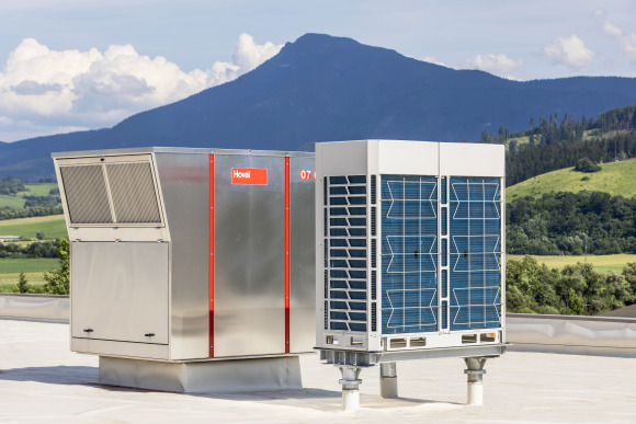 Un système de traitement d'air, c’est une combinaison d’appareils individuels reliés entre eux par un système de régulation. Installés à des emplacements stratégiques, ils sont techniquement indépendants les uns des autres grâce à leurs propres pompes à chaleur. Ils fournissent ponctuellement la puissance requise et veillent ainsi à la température optimale sur l'ensemble du site.